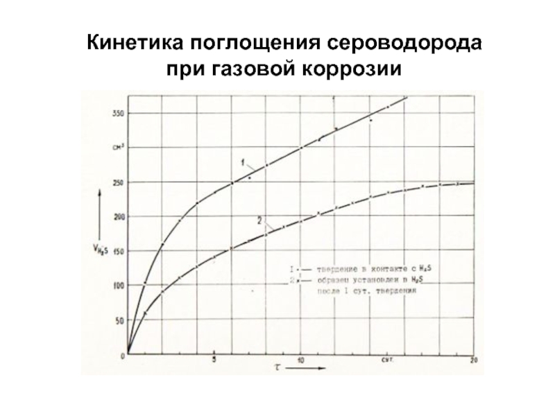 Слайд 90Кинетика поглощения сероводорода при газовой коррозии
