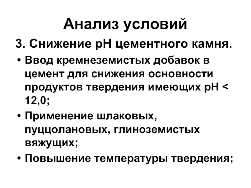 1. Понижение основности продуктов твердения;