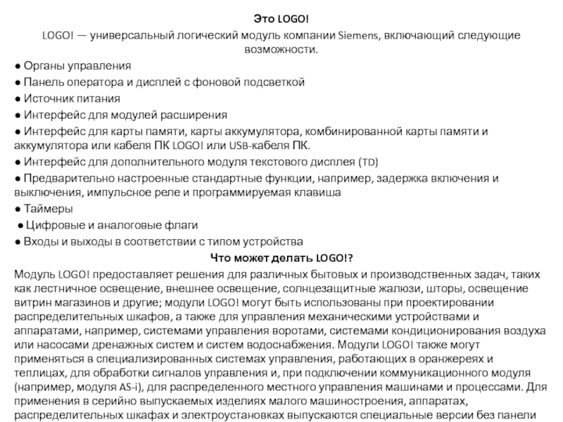 LOGO! — универсальный логический модуль компании Siemens, включающий следующие