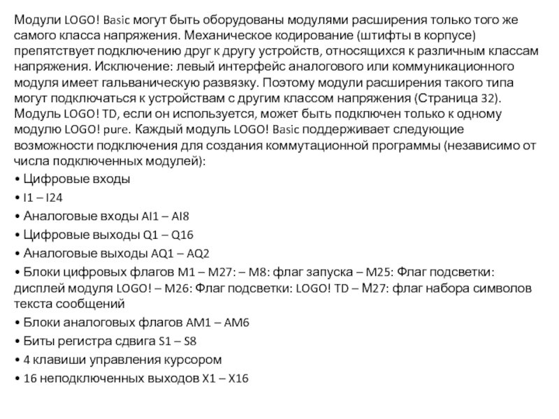 Слайд 3Модули LOGO! Basic могут быть оборудованы модулями расширения только того же