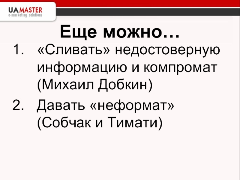 «Сливать» недостоверную информацию и компромат (Михаил Добкин)