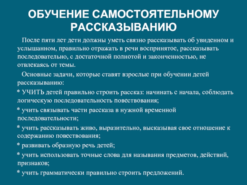 Основные задачи, которые ставят взрослые при обучении детей рассказыванию: