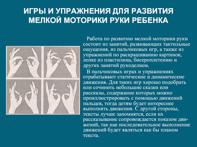 ИГРЫ И УПРАЖНЕНИЯ ДЛЯ РАЗВИТИЯ МЕЛКОЙ МОТОРИКИ РУКИ РЕБЕНКА