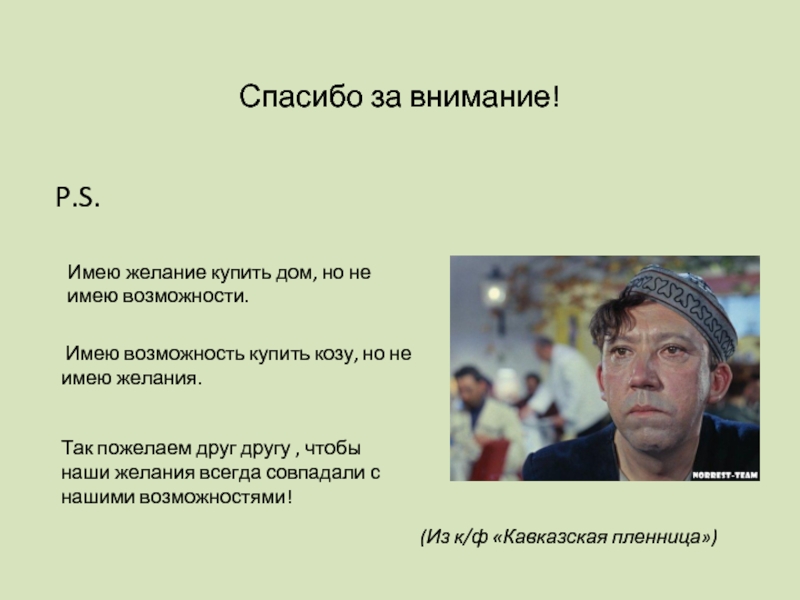 Так пожелаем друг другу , чтобы наши желания всегда совпадали с нашими возможностями!