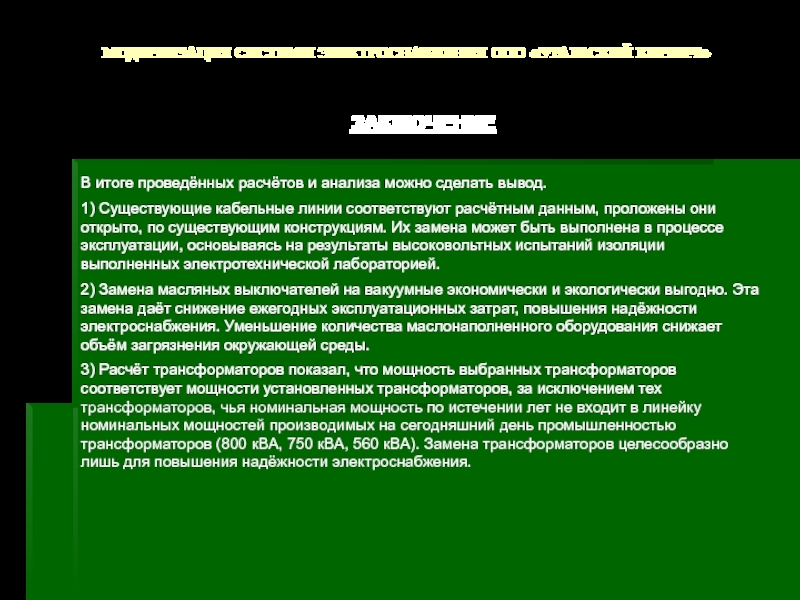 МОДЕРНИЗАЦИЯ СИСТЕМЫ ЭЛЕКТРОСНАБЖЕНИЯ ООО «УРАЛЬСКИЙ КИРПИЧ»