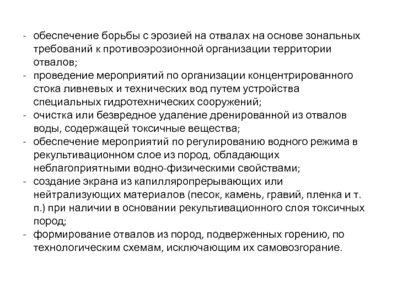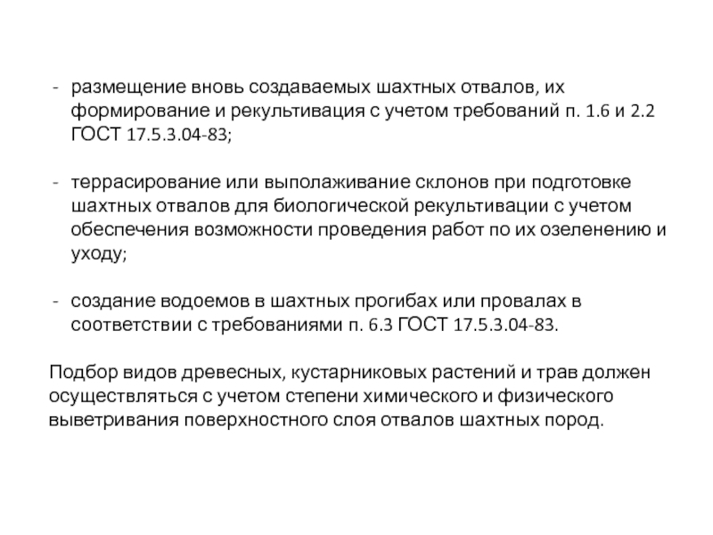 Слайд 39размещение вновь создаваемых шахтных отвалов, их формирование и рекультивация с учетом