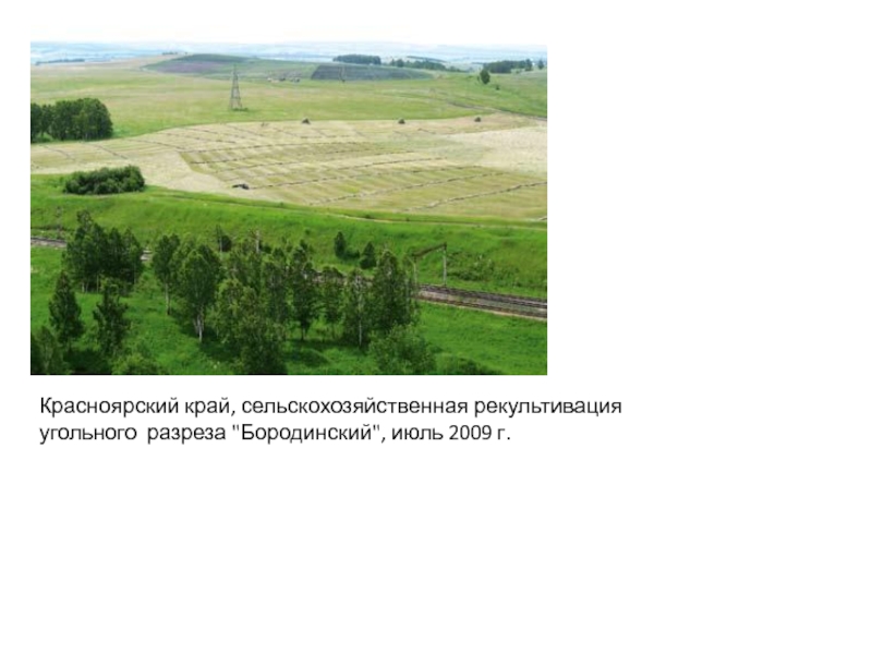 Слайд 64Красноярский край, сельскохозяйственная рекультивация угольного разреза "Бородинский", июль 2009 г.