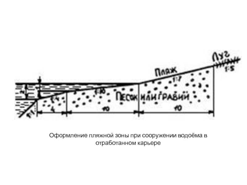 Слайд 61Оформление пляжной зоны при сооружении водоёма в отработанном карьере
