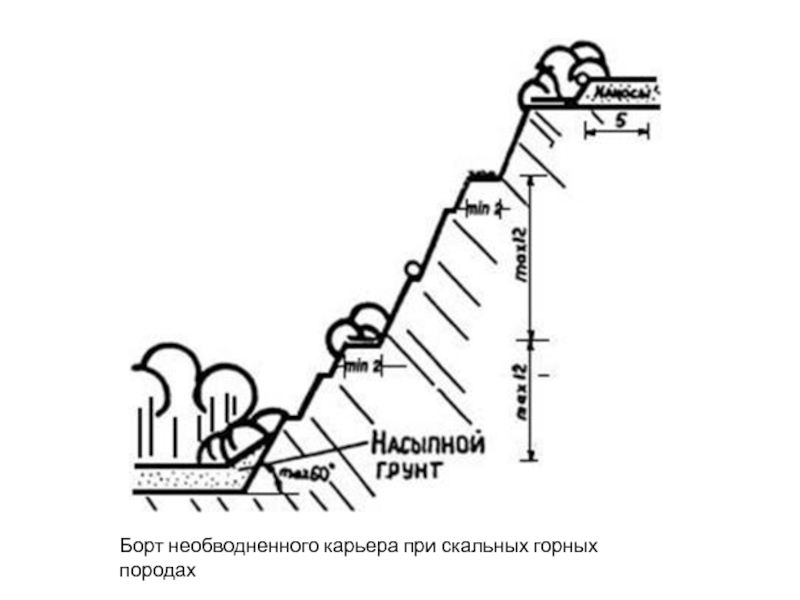 Слайд 58Борт необводненного карьера при скальных горных породах
