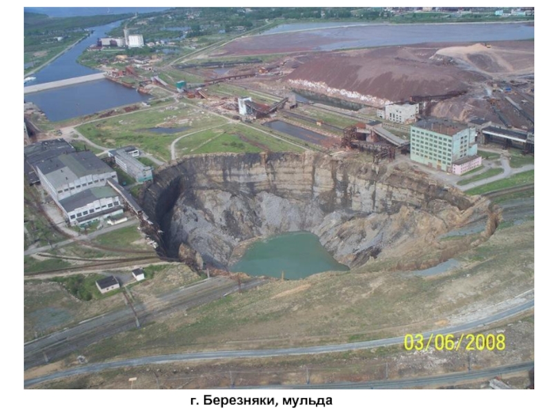 мульды оседания, провалы и другие нарушения земельной поверхности;