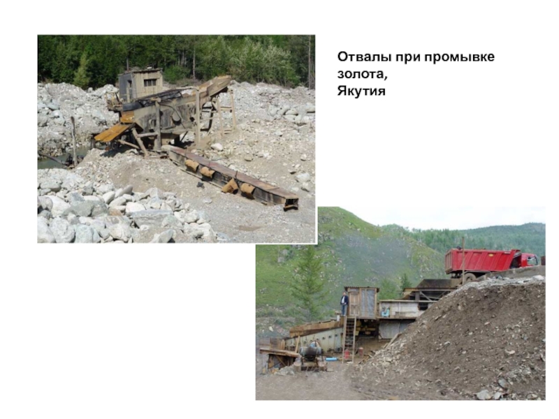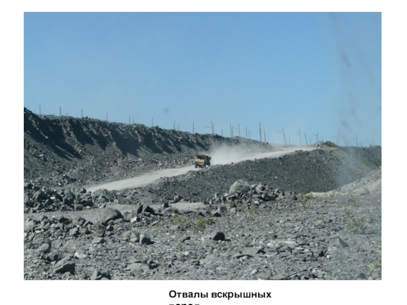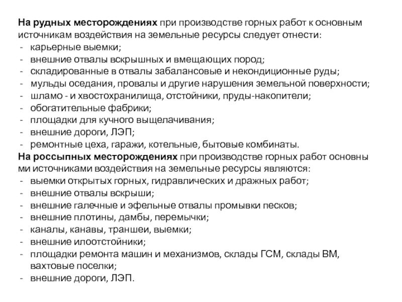 Слайд 9На рудных месторождениях при производстве горных работ к основным источникам воздействия