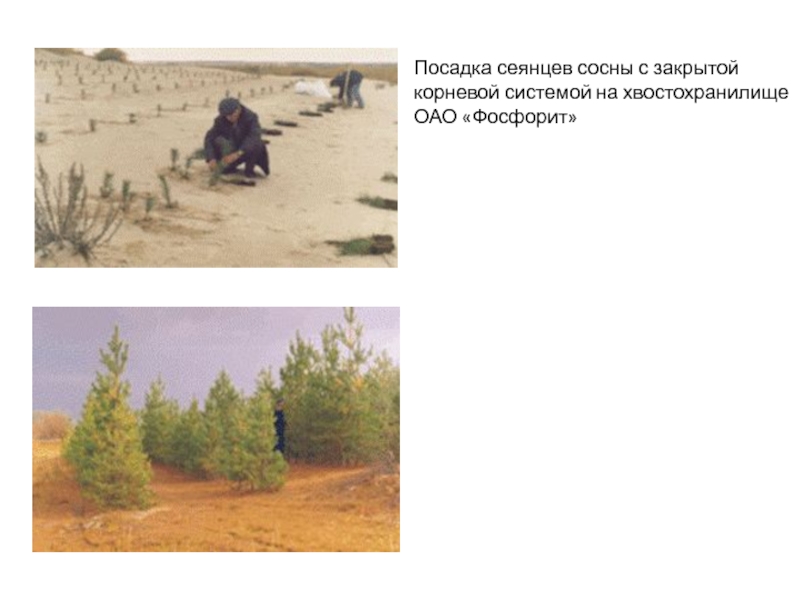 Слайд 68Посадка сеянцев сосны с закрытой корневой системой на хвостохранилище ОАО «Фосфорит»