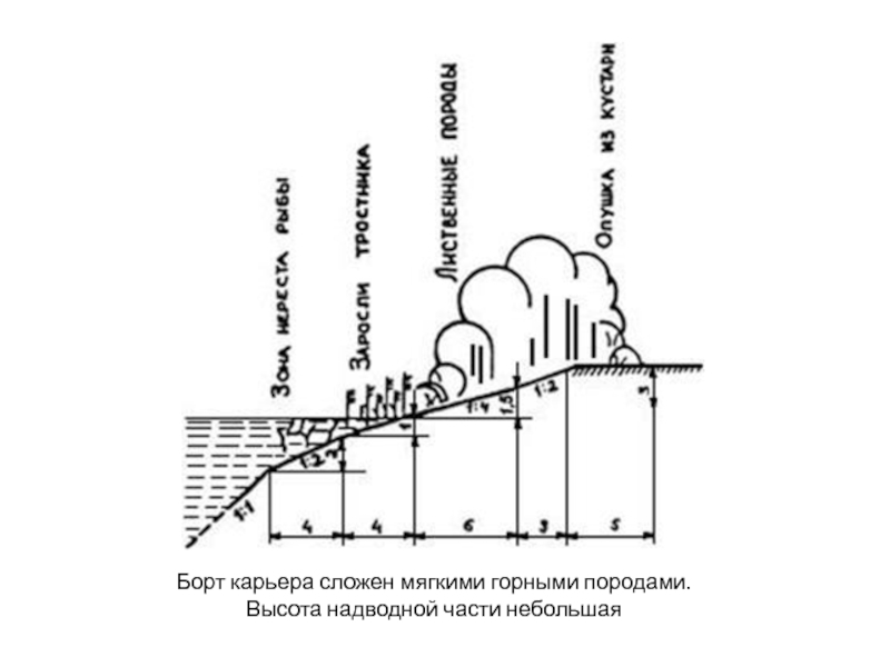 Слайд 55Борт карьера сложен мягкими горными породами.