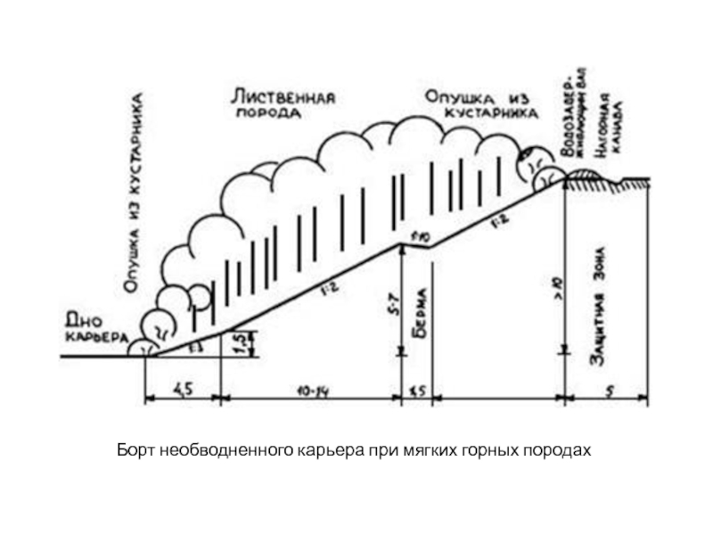 Слайд 56Борт необводненного карьера при мягких горных породах