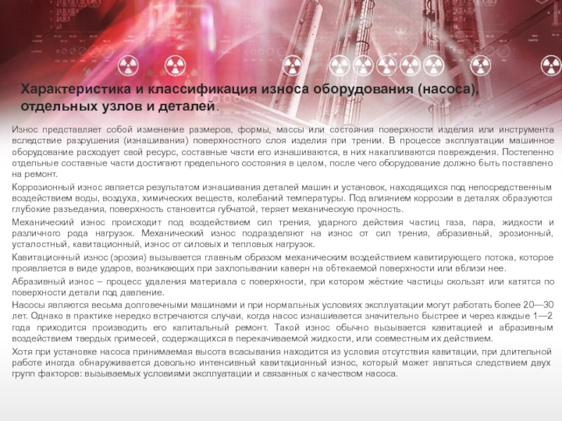 Характеристика и классификация износа оборудования (насоса), отдельных узлов и деталей.