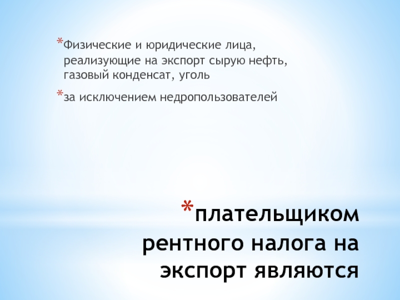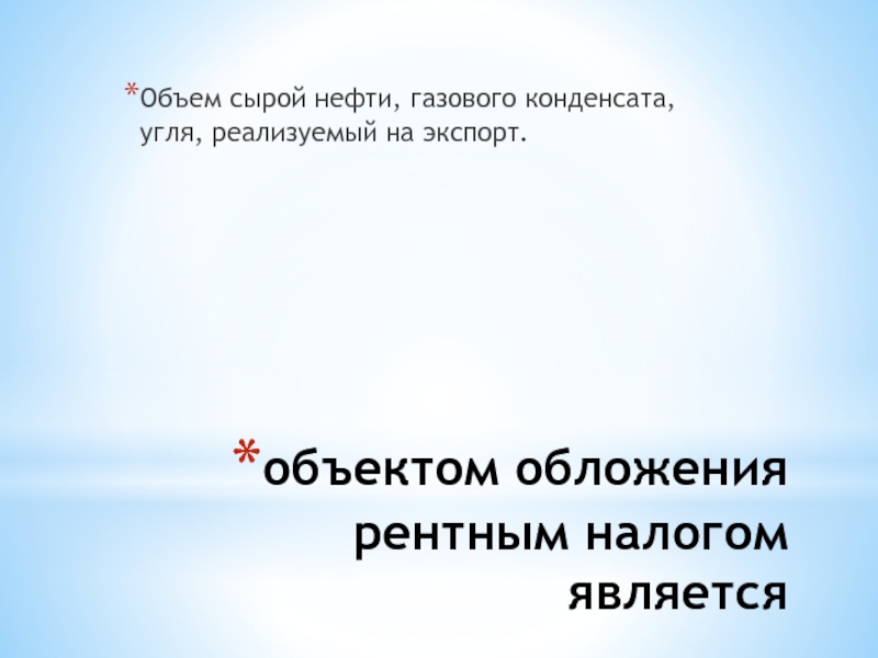 Налоговой базой для исчисления рентного налога на экспорт по углю является стоимость экспортируемого угля, исчисленная исходя из фактически реализуемого на экспорт объема угля.