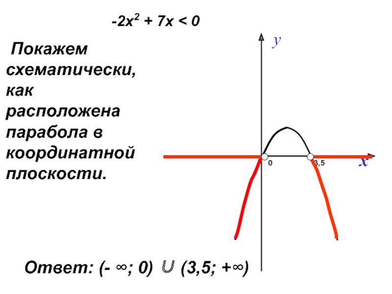 Значит , парабола пересекает ось х в двух точках, абсциссы которых равны 0 и 3,5.