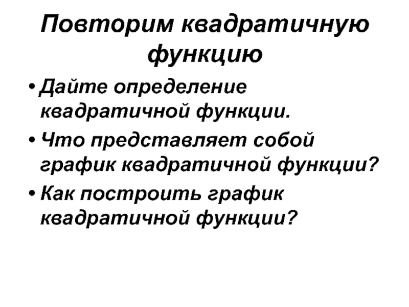 Слайд 2Повторим квадратичную функцию