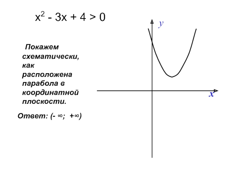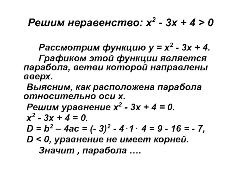 Слайд 17Решим неравенство: х2 - 3х + 4 > 0