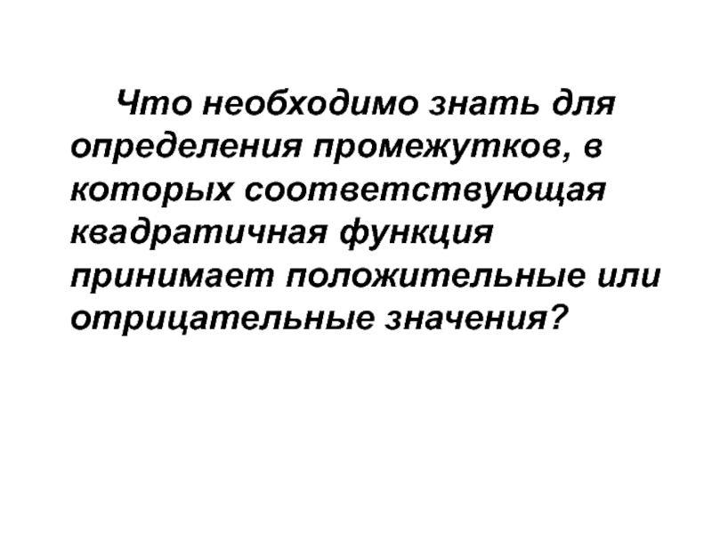 Слайд 9 Что необходимо знать для определения промежутков, в которых соответствующая квадратичная функция