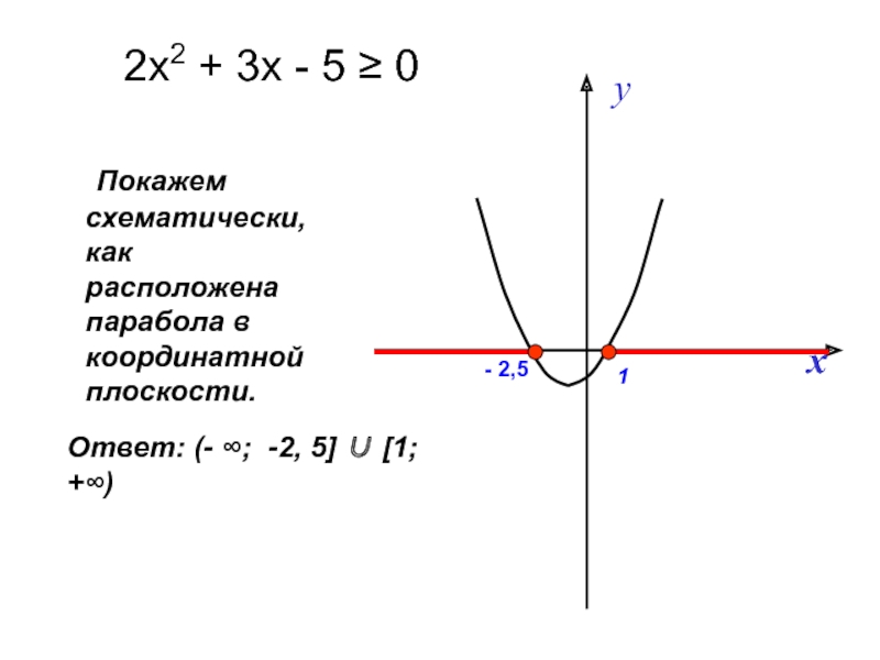 Слайд 18 Покажем схематически, как расположена парабола в координатной плоскости.