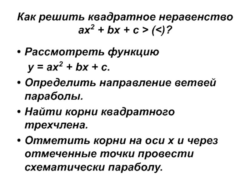 Слайд 24Как решить квадратное неравенство