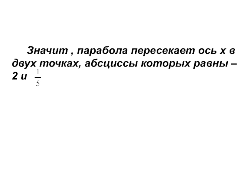 Слайд 12 Значит , парабола пересекает ось х в двух точках, абсциссы которых