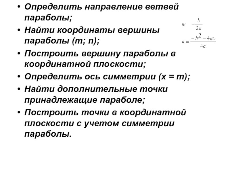 Слайд 3Определить направление ветвей параболы;