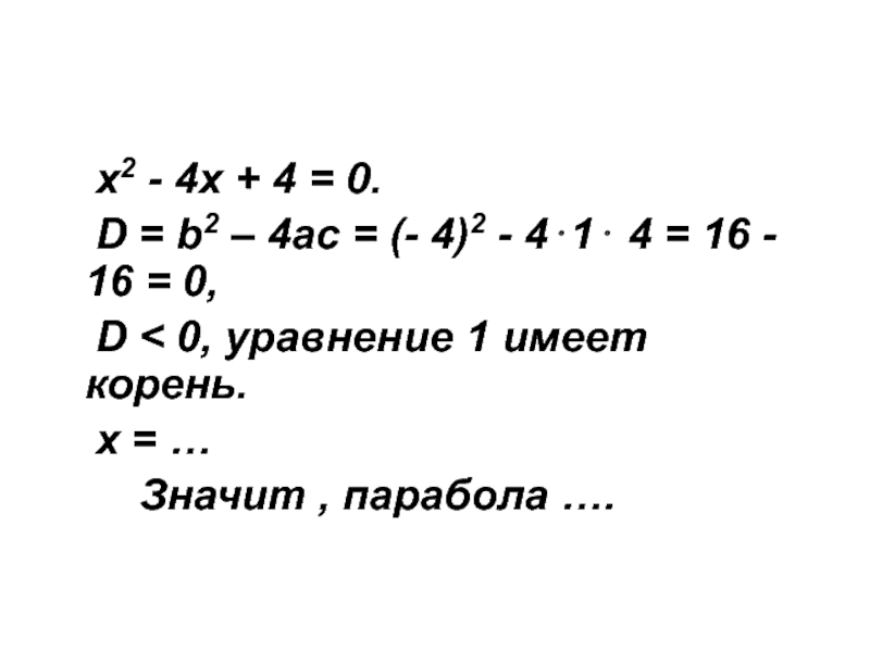 Слайд 20 х2 - 4х + 4 = 0.