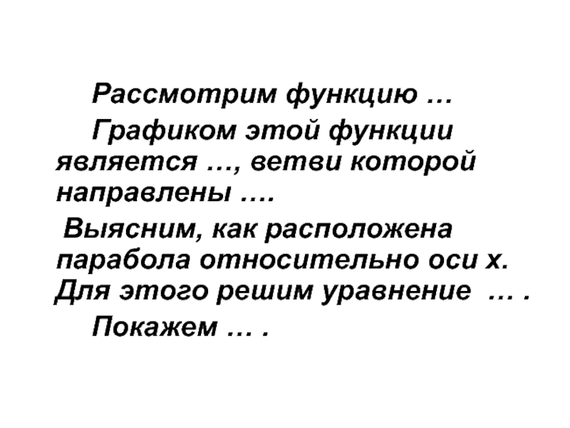 Выясним, как расположена парабола относительно оси х. Для этого решим уравнение … .