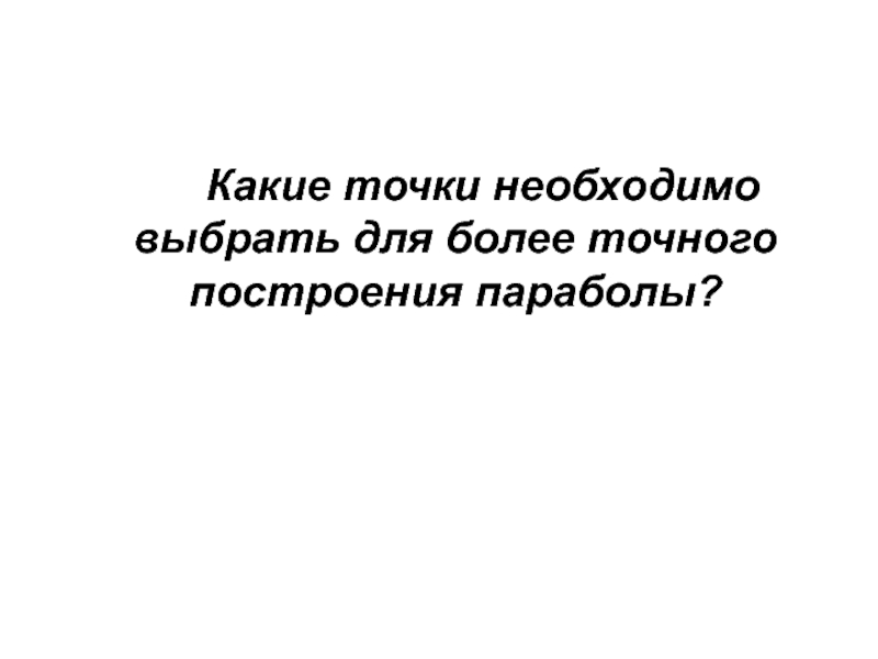 Слайд 4 Какие точки необходимо выбрать для более точного построения параболы?