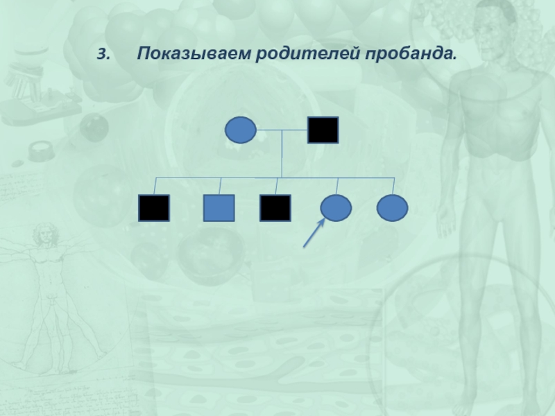 Слайд 74. Выше линии пробанда укажите родителей, соединив их друг с другом