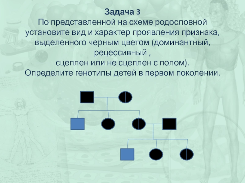 обладателей или гетерозиготных носителей признака (чаще всего гетерозиготные носители определяются уже после составления и анализа родословной).