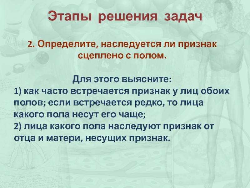 1) как часто встречается признак у лиц обоих полов; если встречается редко, то лица какого пола несут его чаще;