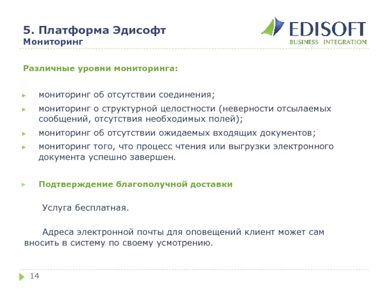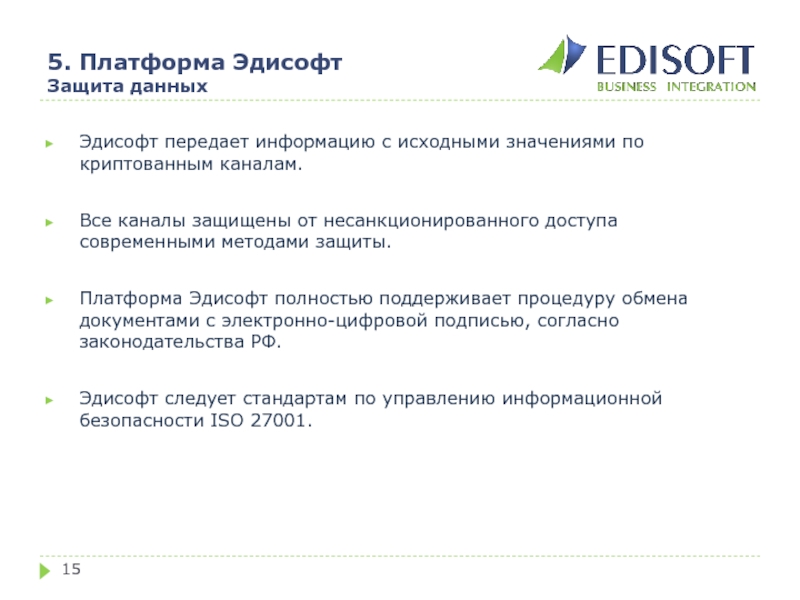 Платформа Эдисофт полностью поддерживает процедуру обмена документами с электронно-цифровой подписью, согласно законодательства РФ.