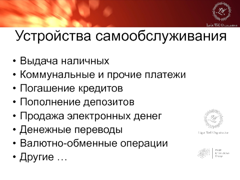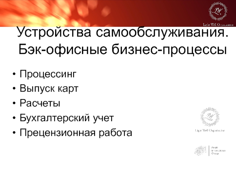 Слайд 8Устройства самообслуживания. Бэк-офисные бизнес-процессы