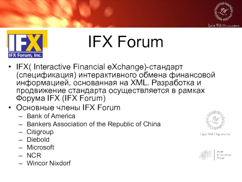 на XML. Разработка и продвижение стандарта осуществляется в рамках Форума IFX (IFX Forum)
