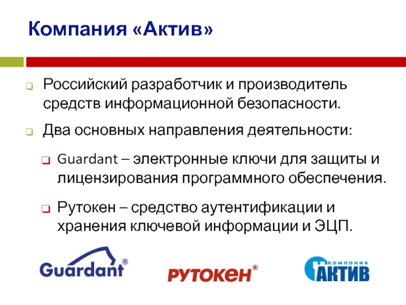 Все ведущие разработчики российской криптографии партнеры компании Актив