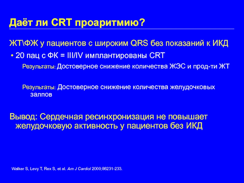 Walker S, Levy T, Rex S, et al. Am J Cardiol 2000;86231-233.