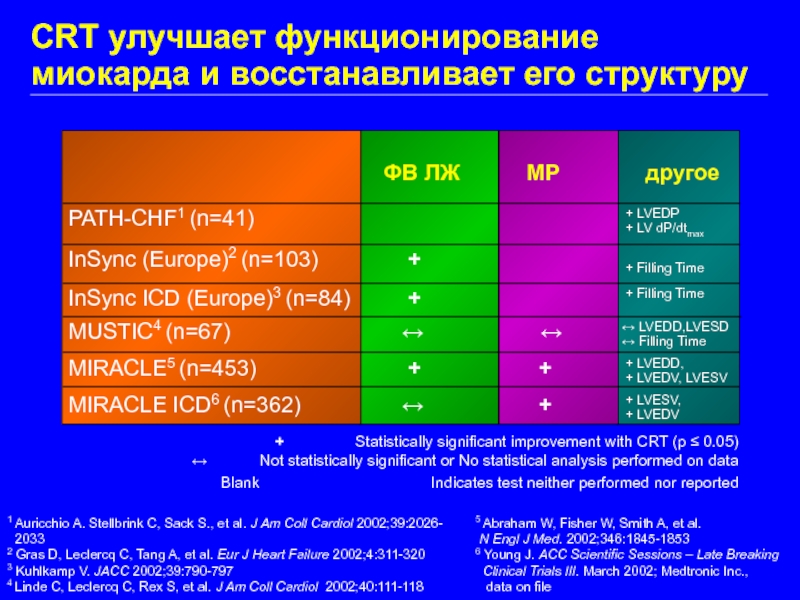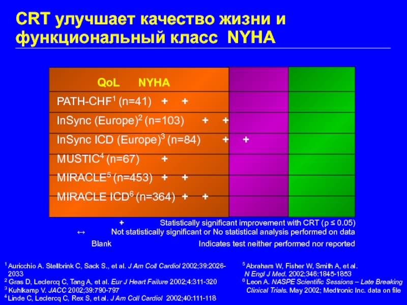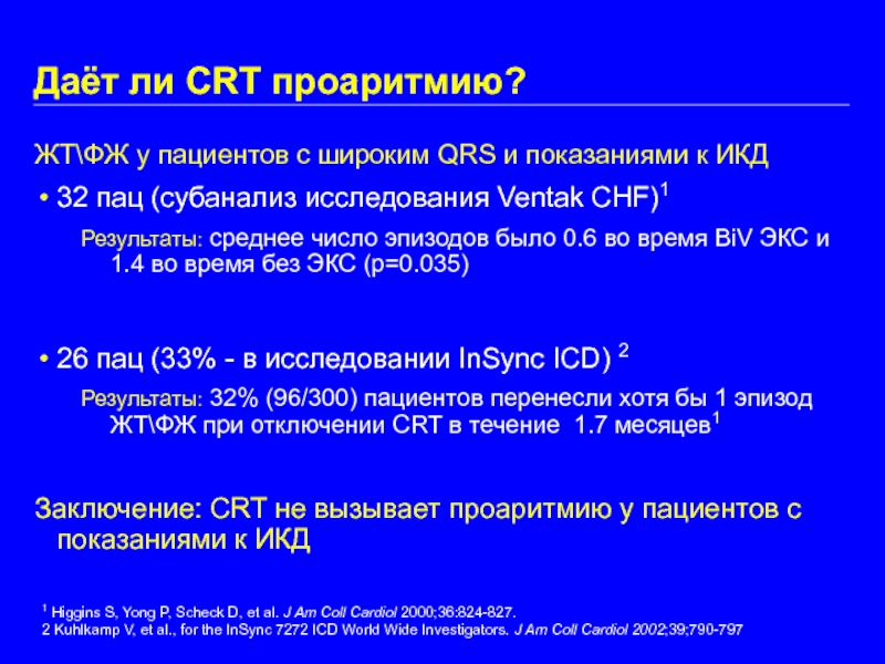 2 Kuhlkamp V, et al., for the InSync 7272 ICD World Wide Investigators. J Am Coll Cardiol 2002;39;790-797