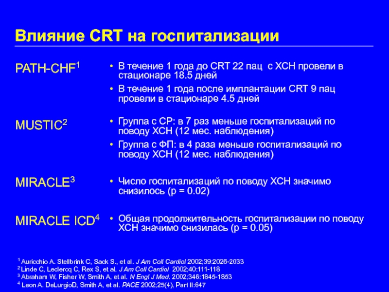 В течение 1 года после имплантации CRT 9 пац провели в стационаре 4.5 дней