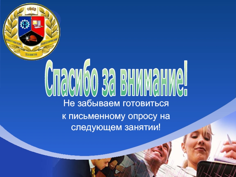 к письменному опросу на следующем занятии!
