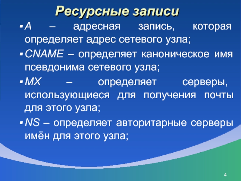 Слайд 4Ресурсные записи