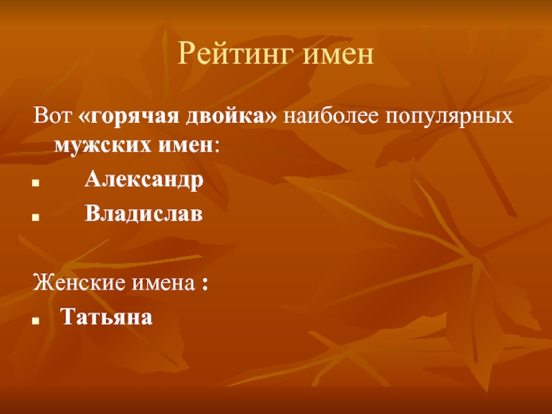 Вот «горячая двойка» наиболее популярных мужских имен: