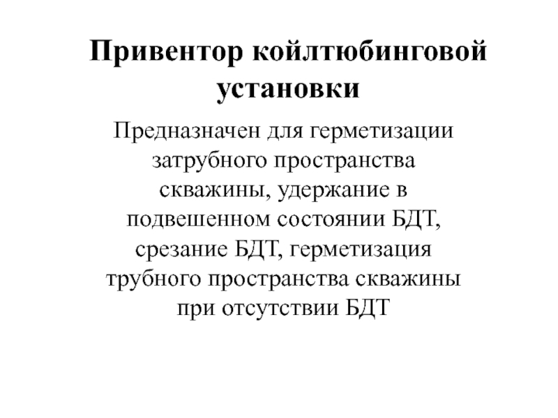 состоянии БДТ, срезание БДТ, герметизация трубного пространства скважины при отсутствии БДТ