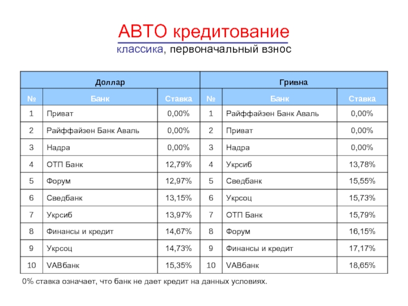 Слайд 3АВТО кредитование классика, первоначальный взнос