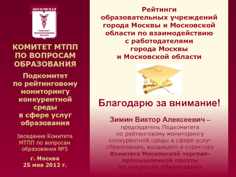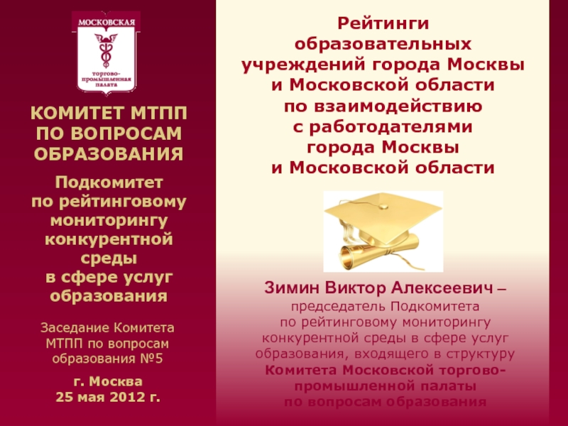 по рейтинговому мониторингу конкурентной среды в сфере услуг образования, входящего в структуру Комитета Московской торгово-промышленной палаты