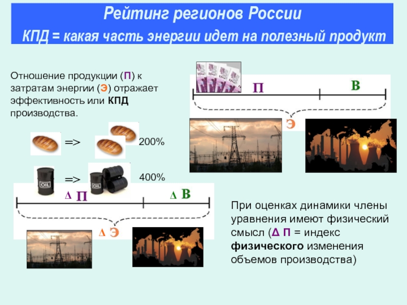 При оценках динамики члены уравнения имеют физический смысл (Δ П = индекс физического изменения объемов производства)