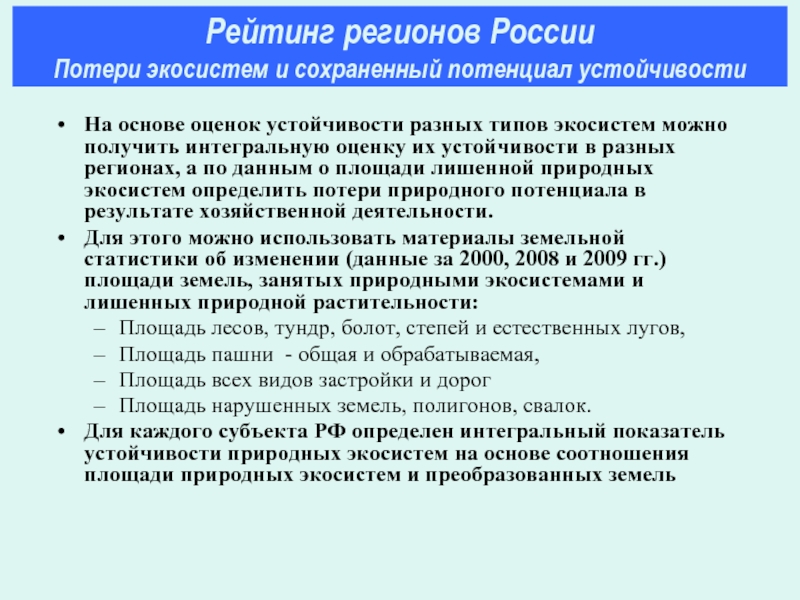 Природный потенциал: естественные экосистемы, природная устойчивость