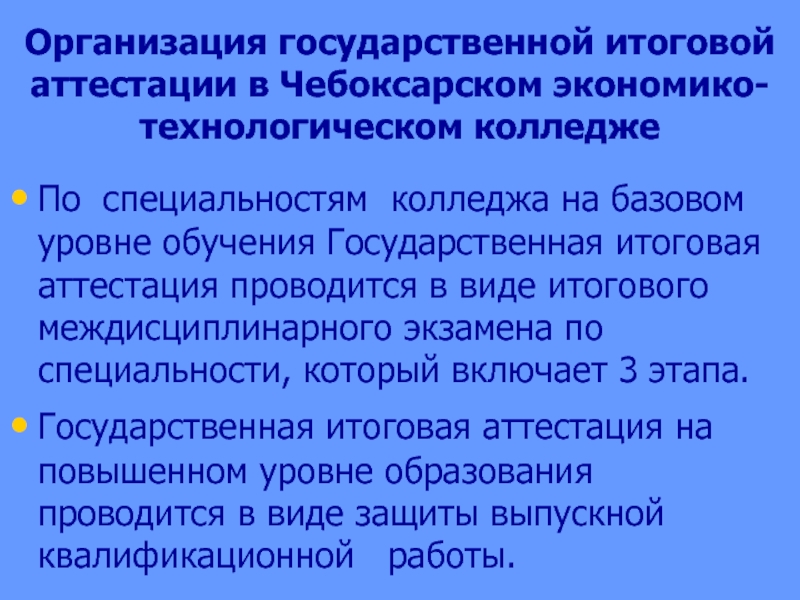 Слайд 4Организация государственной итоговой аттестации в Чебоксарском экономико-технологическом колледже